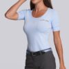Due to the popularity of the Hybrid fabric (think no iron, stretch, light) we offer the same fabric in our ladies shorts. The sleek high tech fabric offers a super fit. The shorts are lightweight, super fitting, and sport two horizontal slash pockets in front (no “elephant ear” hips in these). They ride low on the waist, and have a cute little crossover belt loop detail in the center back. The perfect inseam at 5″ is short enough to show off your tan and discreet enough for Madam Owner.